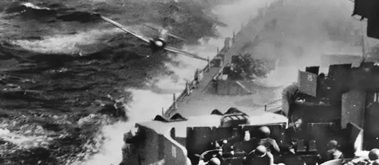 Which Pacific island saw the war’s last major kamikaze attacks and costliest U.S. naval losses in a single battle?